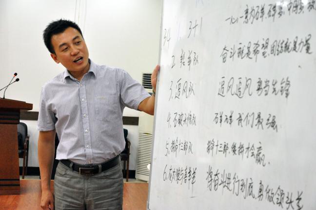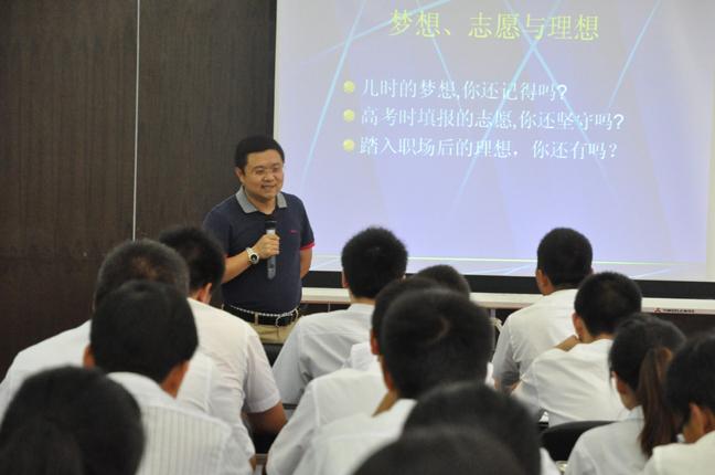 训前指导主要是培训前的热身,由集团人力资源部总经理周博宁主讲,包括分组、团队展示、协作游戏,以及集团用人理念与成长通道的分享。通过培训前的破冰活动,来自不同产业、不同岗位的新进员工消除了彼此之间的陌生、隔阂,增进了相互之间的了解、信任和融合,为接下来的培训奠定了良好的开端。