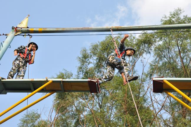 高度8米的断桥依然挡不住队员们挑战自我的热情