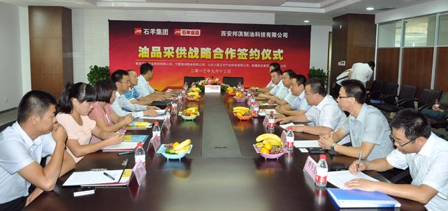 9月13日的石羊集团总部,秋高气爽、阳光灿烂,9点30分,经过行政部与市场部前期的紧张筹备,油脂事业部与陕西建兴农业科技有限公司、宁夏锋润粮油有限公司、山东三星玉米科技有限公司及新疆泰昆集团股份有限公司四家油企“油品采供战略合作签约仪式”在三楼会议室如期举行。
