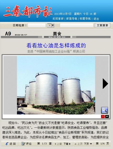 现如今,"民以食为天"的含义不光是要"吃得安全,吃得营养",并且还要"吃出品牌,吃出文化"。一份最新统计数据显示,陕西食品工业增势强劲,品牌建设深入推进。为此,本报从今日起推出"食品行业新观察"系列报道,我们的记者将走进品牌企业,为您探访名牌食品生产、加工、管理的奥秘,为您提供安全消费、放心消费、健康消费、时尚消费指南。今日首期推出来自西安邦淇制油科技有限公司和多美滋婴幼儿食品有限公司的报道。