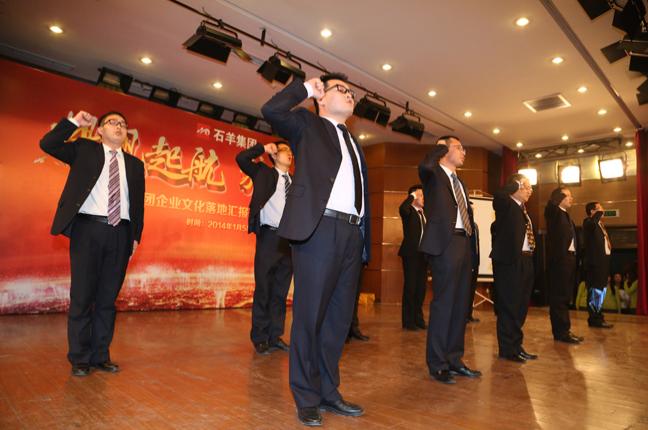 2013年度是石羊集团企业文化年,此次工作会议特意在晚宴前增加了“事业与梦想”演讲和团队风采展示环节。此环节由总裁助理赵超与集团项目投资部总经理傅巧艳主持,各个产业选派精英管理人员代表参加。金融、油脂、农牧、地产用相同的演艺元素展示各自不同的团队风采和演讲者的魅力,现场欢快、热烈、团结、激情的气氛感染了现场的每一个人,彻底引爆了全场的气氛!
