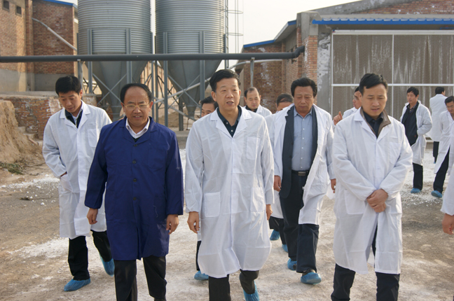 11月11日,由渭南市副市长吴蟒成带队,成员由各县(市、区)分管领导及畜牧(农业)局局长等一行50余人组成的全市建设陕西现代畜牧业示范区观摩团现场观摩石羊集团百万只肉鸡养殖示范园区建设情况,石羊集团副总裁韩春元、石羊集团肉鸡事业部副总经理何东力陪同观摩。