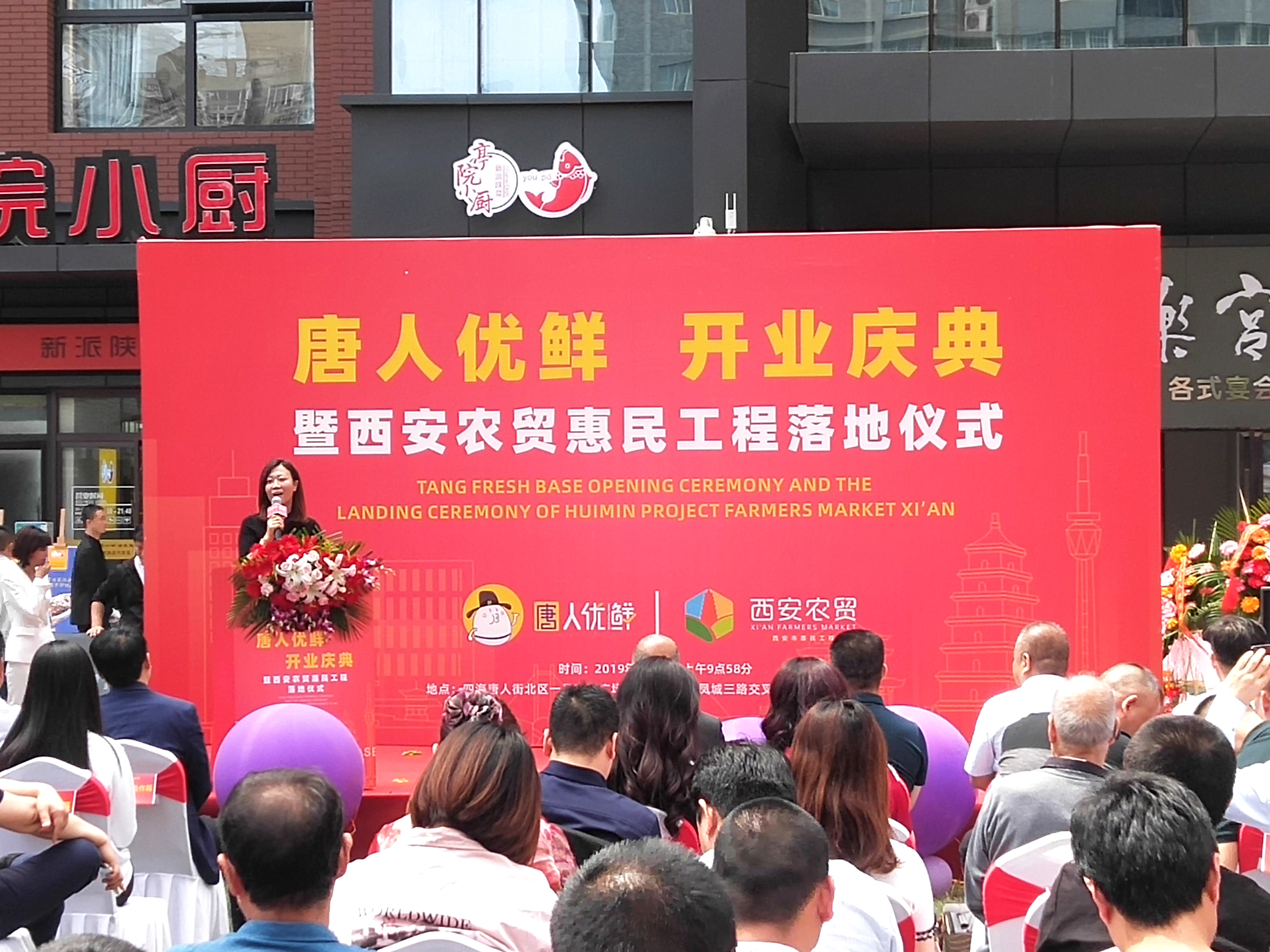 5月30日上午,位于四海唐人街唐人优鲜生鲜超市门前彩虹门矗立、气球飘扬、舞狮精彩、人流涌动。在一派喜庆祥和的气氛中,唐人优鲜开业庆典暨西安农贸惠民工程落地仪式隆重举行。
