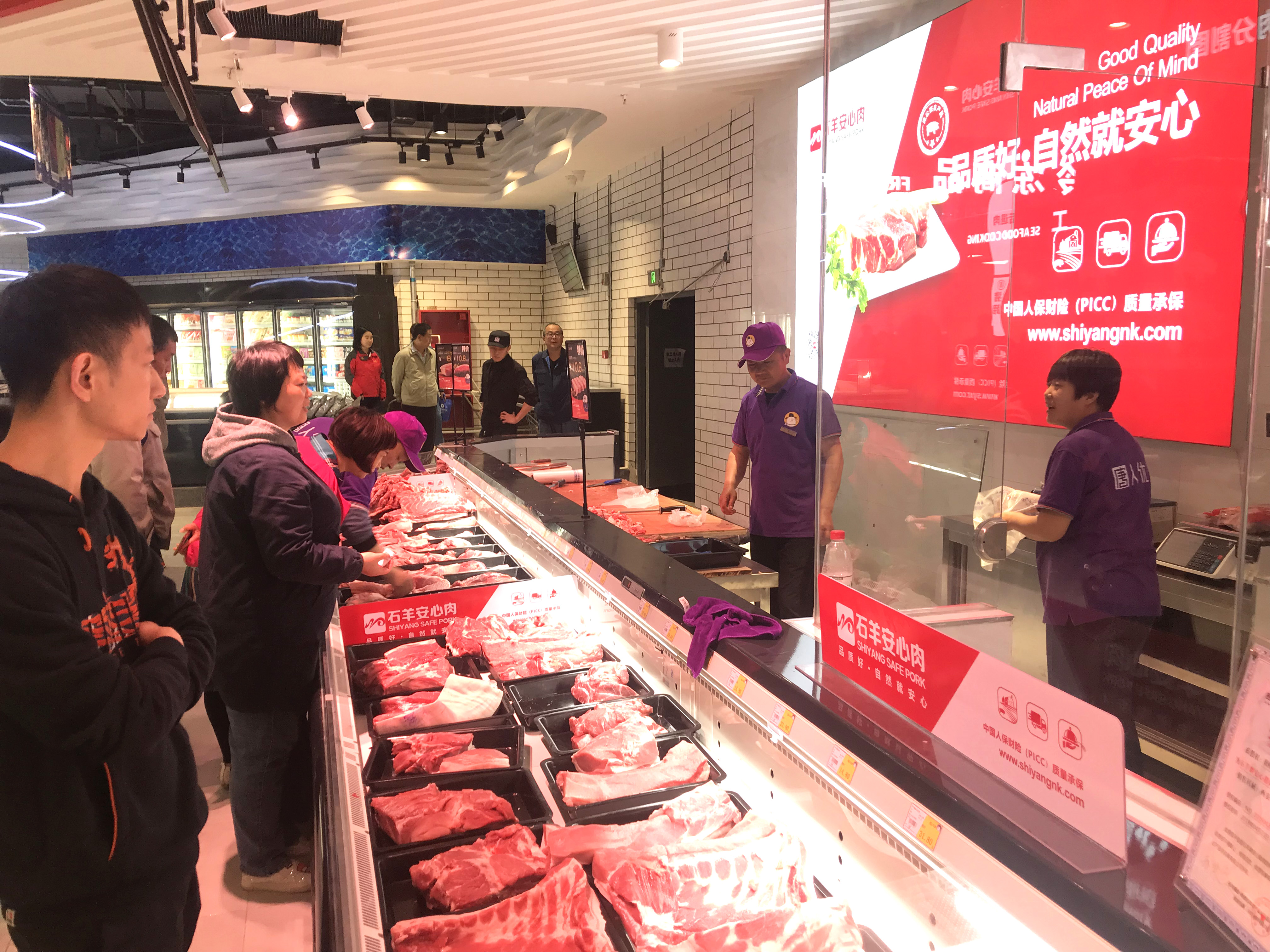 石羊安心肉生鲜猪肉产品是由权威机构谱尼监测进行全项检测合格的产品,是陕西唯一一家全程由中国人保财险(PICC)承保的生鲜猪肉产品。此次石羊安心肉专柜引入高品质的净菜市场,很好服务周围3km内的30万+的消费人群,满足了现在消费者高品质、快节奏的生活方式,为广大消费者带来“安全、营养、美味”的生鲜猪肉产品。