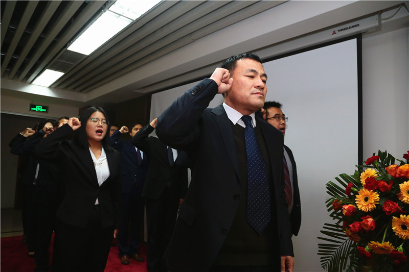 2020,总结过去是成绩,迎接未来是目标。“我保证对企业的绝对忠诚,以饱满的热情投入到每一天的工作中……我将严格要求自己,用脚踏实地的行动、坚不可摧的信念,努力超越自我,全力以赴,不抱怨,不找借口,忠于目标,忠于企业……敢于吃苦,甘于奉献,戮力同心,全力以赴,为全面完成2020年度各项目标任务而不懈奋斗!”誓词响亮,誓言铿锵,这是石羊家人最真诚的内心独白,是石羊家人最给力的团队表达。目标宣誓不只是仪式,更是对自我的一种激励,它将会融入和贯彻到日常的岗位工作中,并将转化为行动。