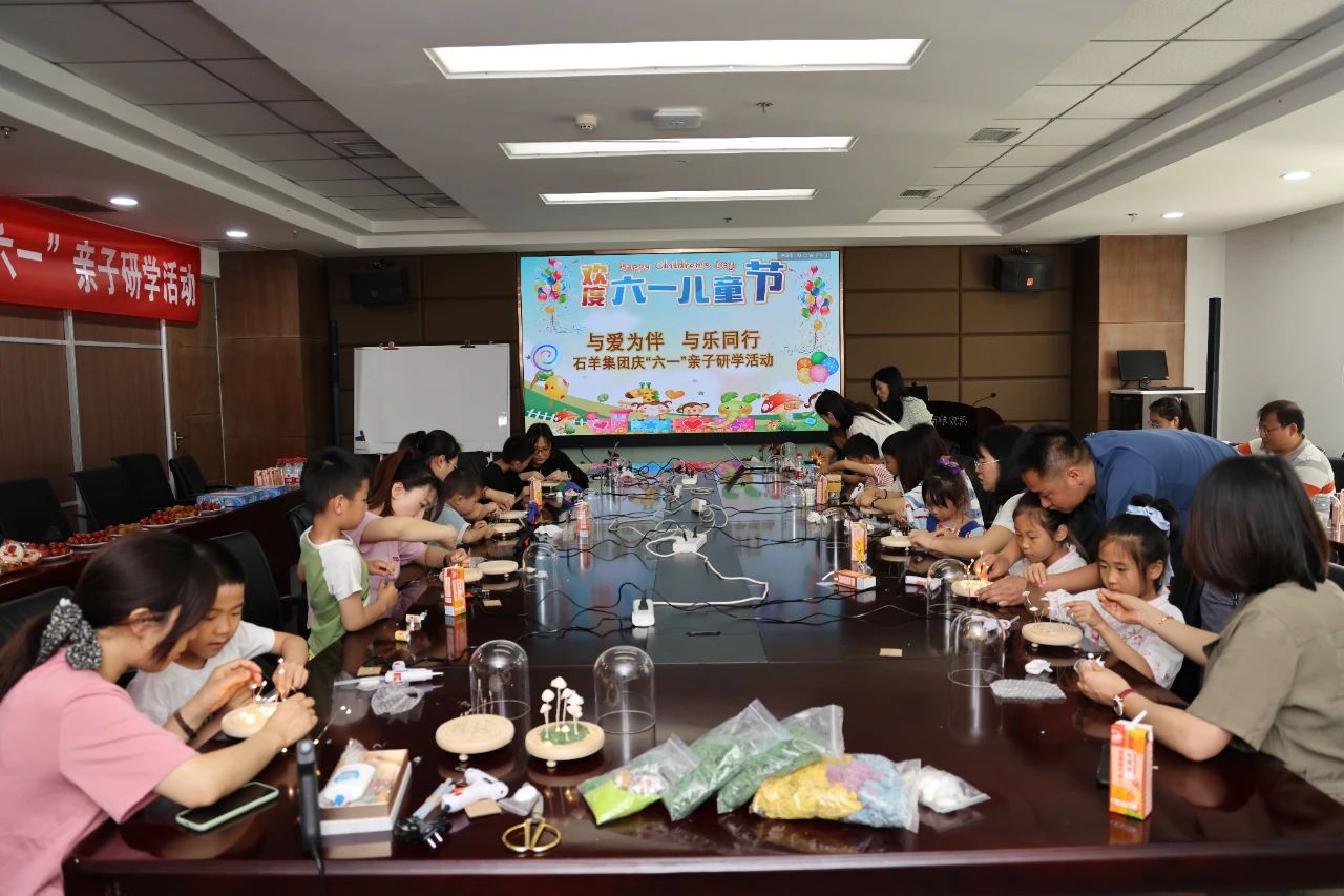 石羊集团总部还开展了庆六一亲子研学活动。小朋友们带着好奇心走进爸爸妈妈的工作地参观,了解他们的工作情况。大家观看了石羊云养殖视频,了解了小猪的生长过程并提出各种问题,增长了见识。在手工制作蘑菇灯的亲子活动中,父母和孩子间良好的协作互动,使亲子关系更加融洽。