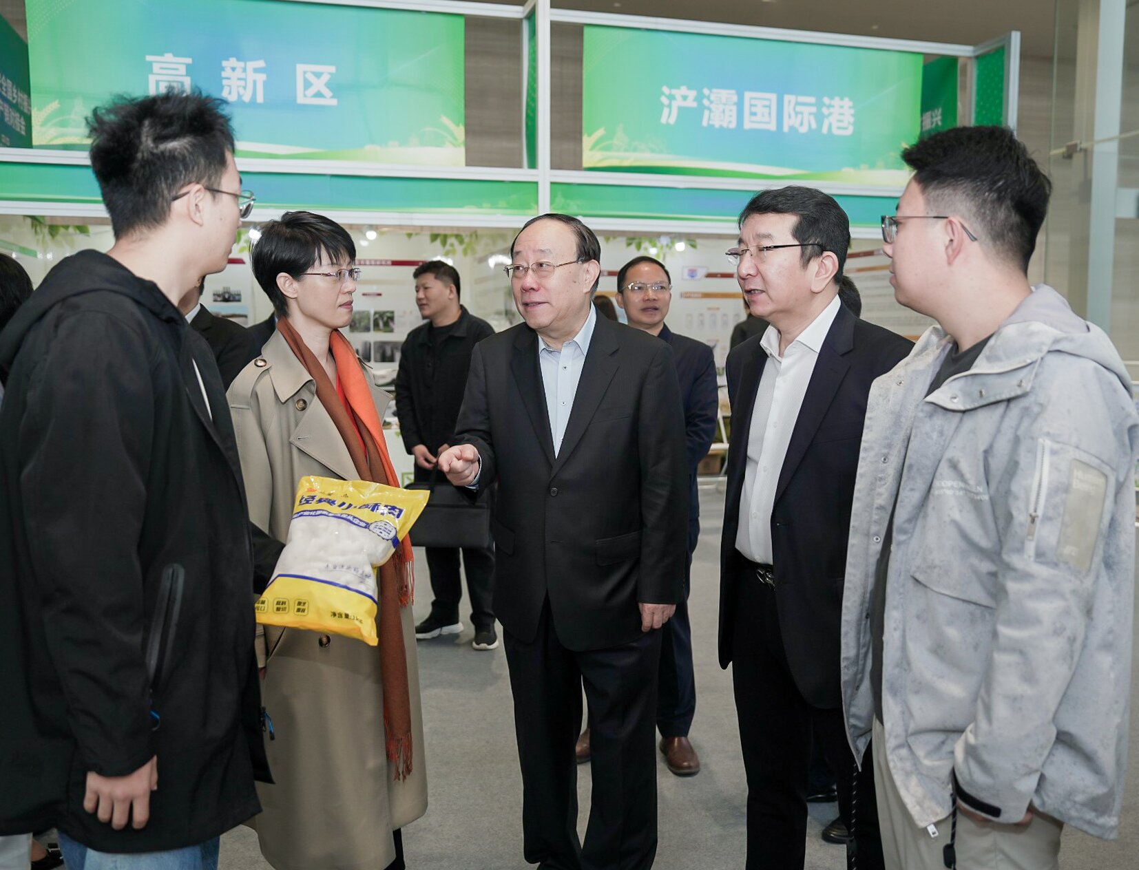 全国政协外事委员会副主任,商务部原副部长、党组成员王炳南,西安市商务局党组书记、局长黄瑜晖,商务部西安特派办、陕西省商务厅、陕西省农业农村厅、西安市农业农村局等相关领导在展位前详细了解企业情况、产品展示及“一桶油、一块肉、一道菜”的全产业链建设成果。