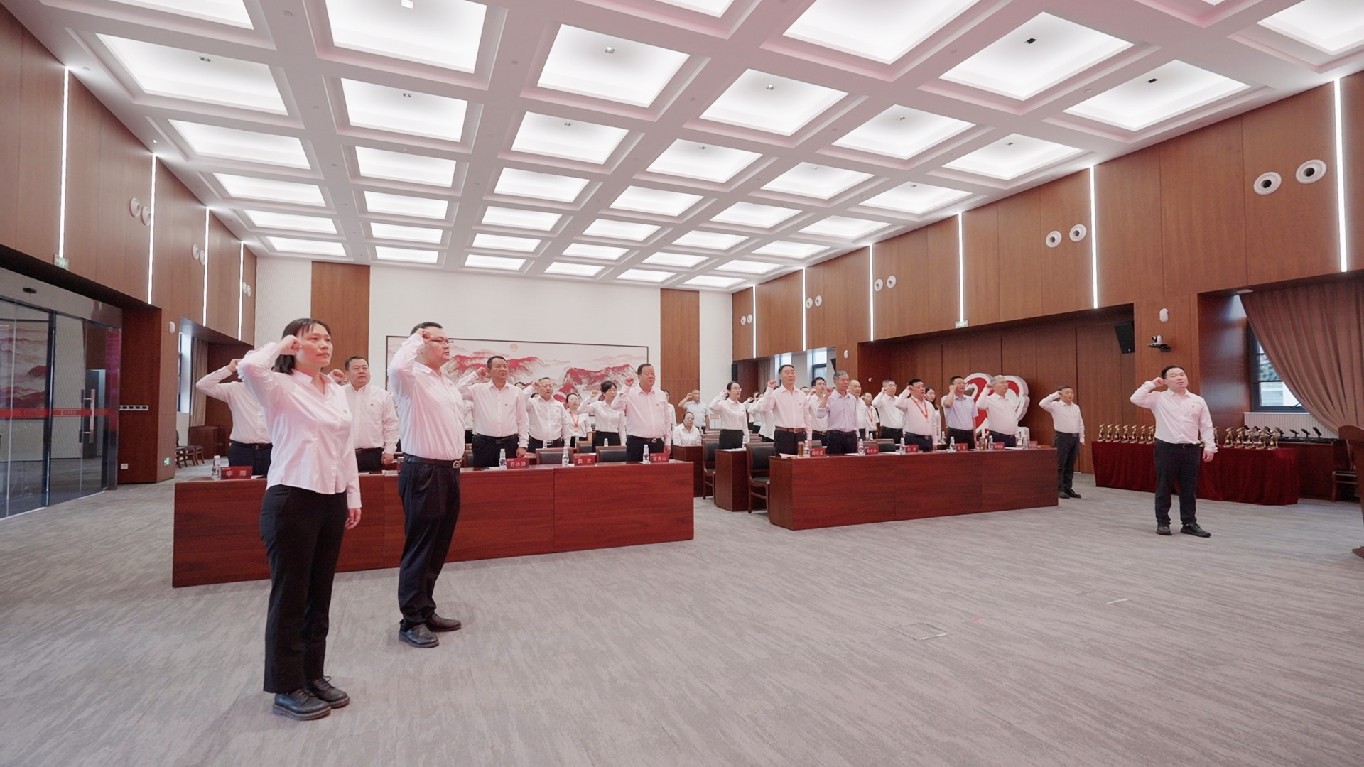升旗仪式后,集团总裁魏欢带领2名新党员及36名党员代表面向党旗庄严宣誓。“我志愿加入中国共产党,拥护党的纲领……”,字字千钧的誓言响彻全场,激荡在每位党员心间,激励全体党员在新时代新征程中奋勇争先。