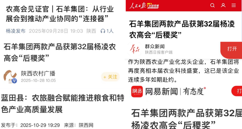 石羊集团的亮眼表现和丰硕的荣誉也吸引了主流媒体的广泛关注。人民日报、农民日报、陕西日报、陕西广播电视台、陕西农村广播、西安广播电视台、渭南广播电视台、杨凌电视台、蓝田县广播电视台等中央、省、市、县四级官方主流媒体,以及陕西网、乡村振兴新闻网、网易新闻网、腾讯新闻网等主流网络媒体纷纷聚焦报道,使石羊集团成为本届农高会上备受瞩目的明星企业,在众多参展企业中脱颖而出,赢得了行业内外的广泛赞誉。五天时间,石羊集团展位累计吸引100多万人次来访参观,充分展现了企业的品牌影响力与号召力。