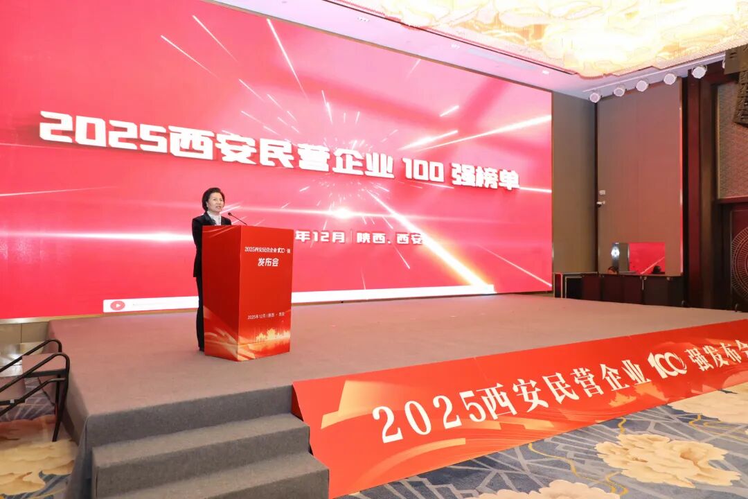 西安市委统战部副部长、市工商联党组书记孙杏娟发布“2025西安民营企业100强”榜单。