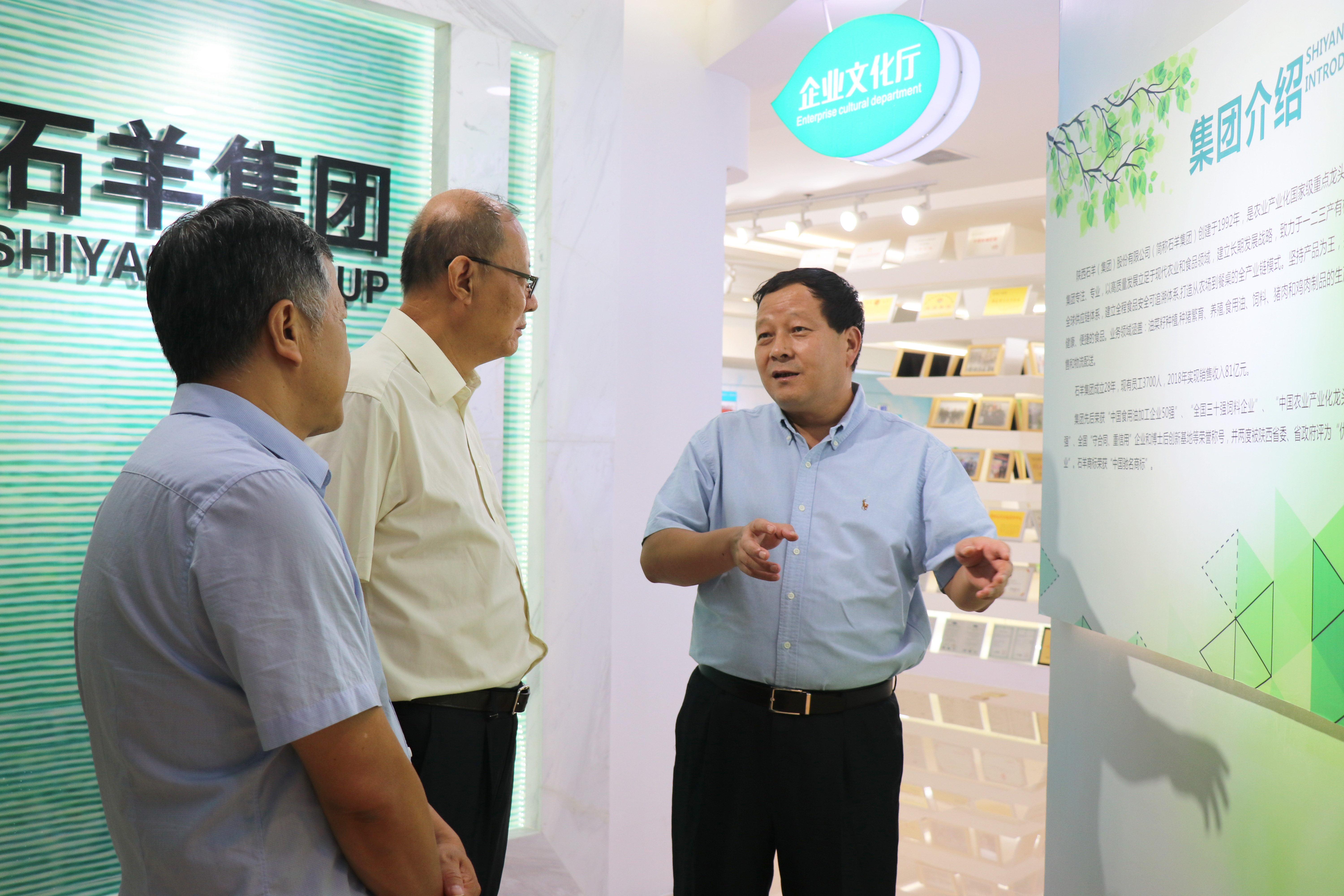 7月19日,陕西省政府参事秦向东主任、省食品协会副会长林晓平、省关心下一代工作委员会副会长蒋惠莉等一行5人莅临石羊集团进行食品安